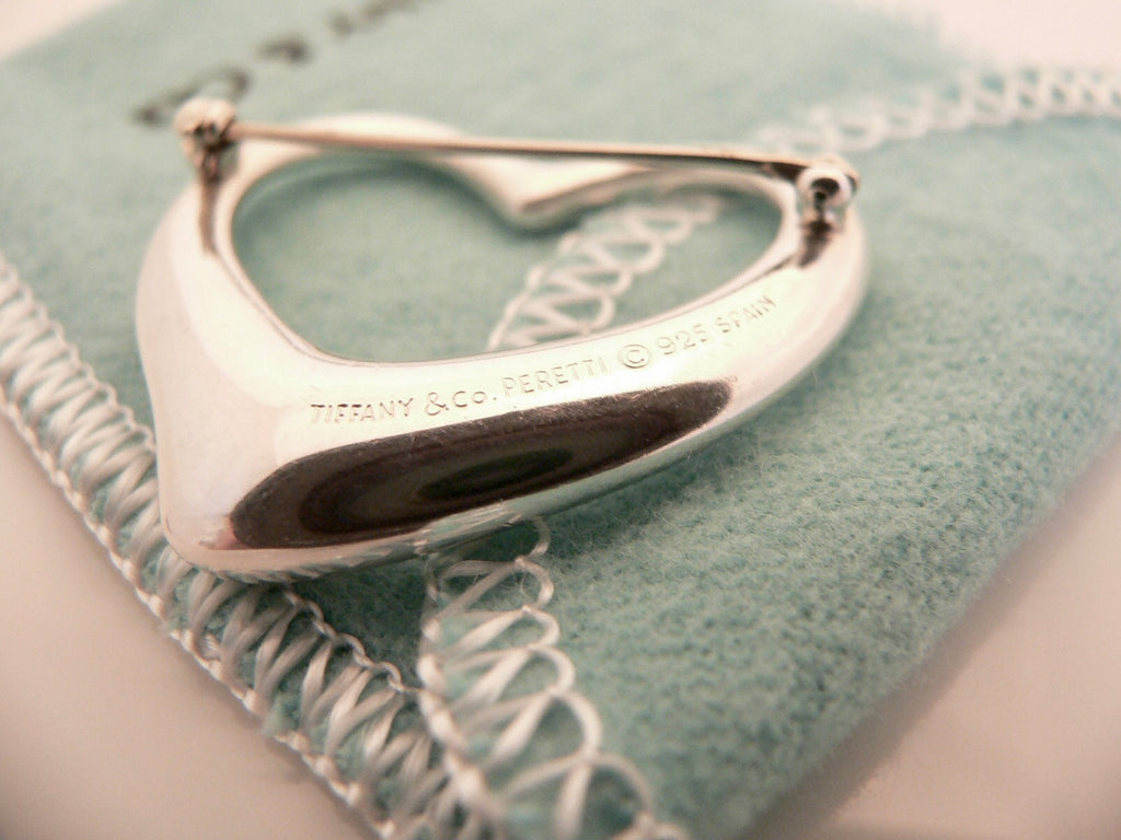 Tiffany & Co Silver Peretti Large 1.5 Inch Open Heart Brooch Pin Gift Love