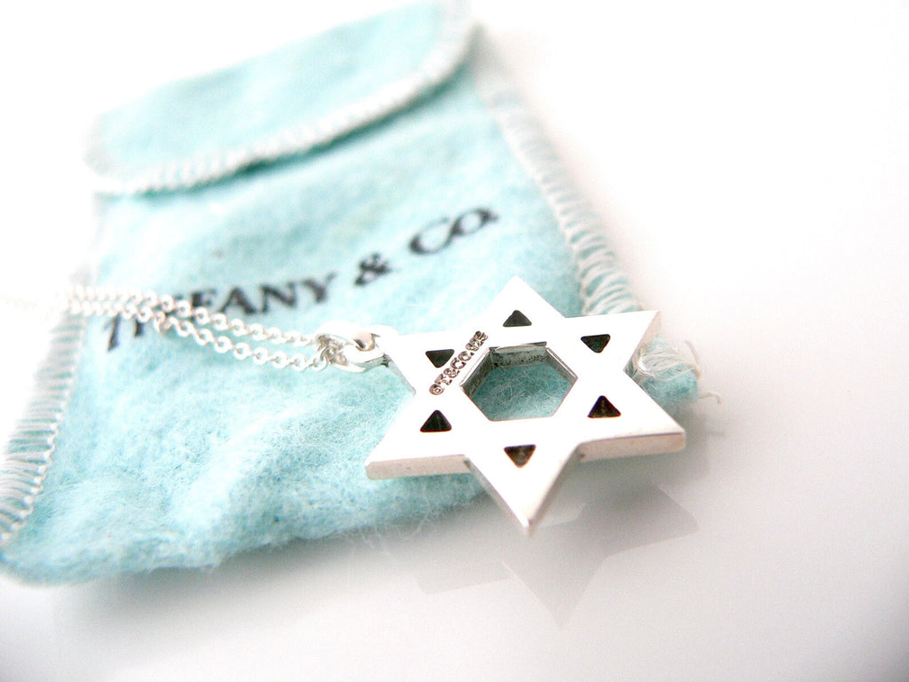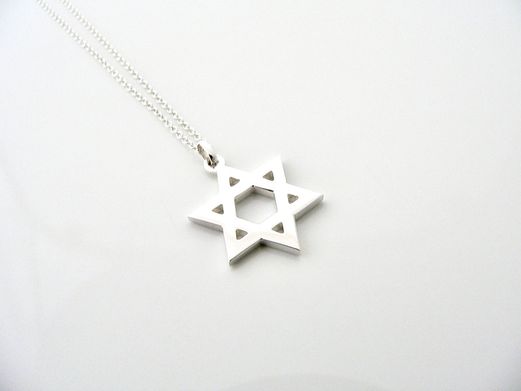 Offered for sale is a wonderful and gorgeous Tiffany & Co's Silver Star of David necklace. It is most definitely Tiffany classic that will never go out of style. It will most certainly be a piece that you will turn to over and over again, so it is great value for your money! It is a wonderful necklace that fits a lifestyle on the go -- the necklace can be worn to almost any occasion! It is simple, elegant, and classic all rolled into one necklace. Imagine the piece with your professional office attire ... Now imagine it with jeans or weekend wear ... Perfect! The item is very comfortable to wear, and is in great condition. As always, the item is fully hallmarked and guaranteed to be 100% authentic.